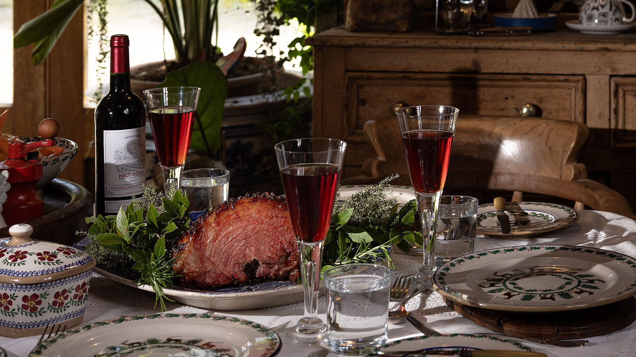 In the slow cooker, pour in Highbank Organic Apple Cider (choose from our Proper or Medieval cider) around the ham fillet. Add one onion, a bay leaf and peppercorns, cover and cook on low for 6-8 hours.